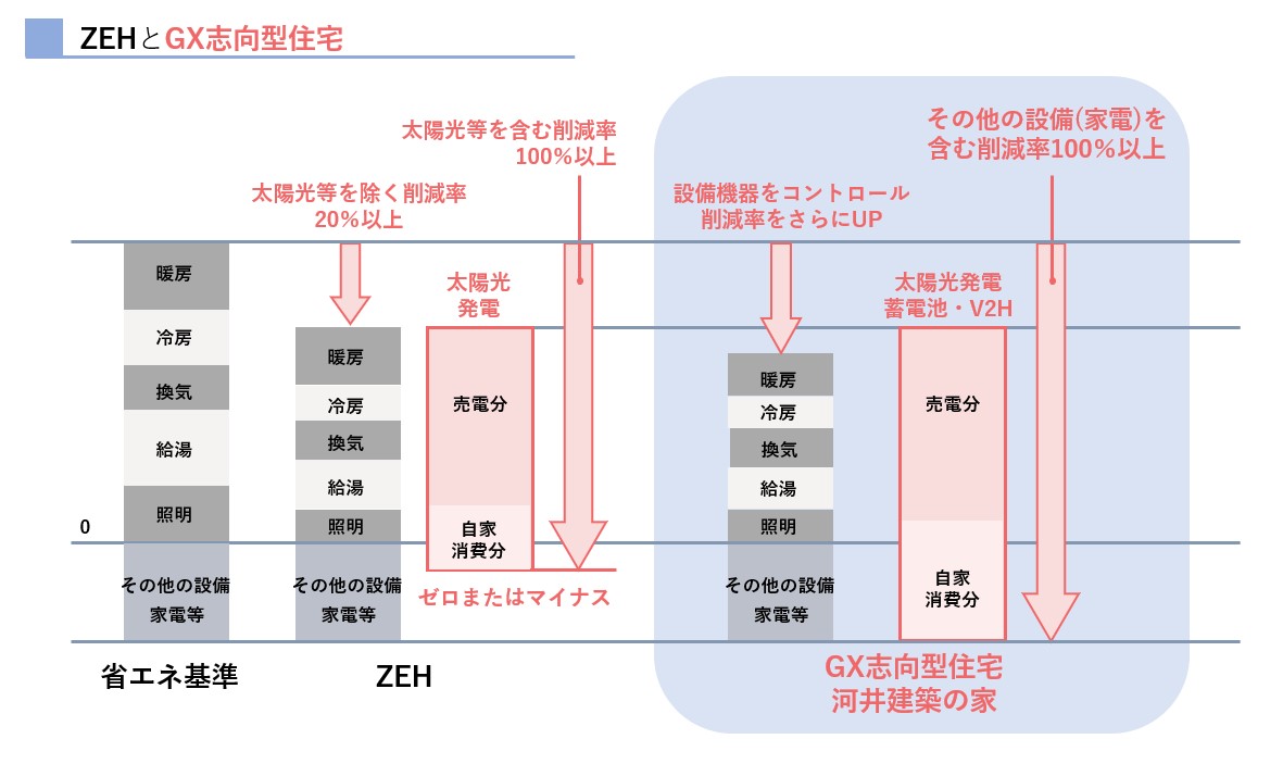 GX住宅:断熱+高効率設備+自家消費制御 → 全体最適なゼロエネルギー