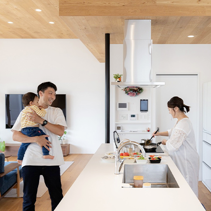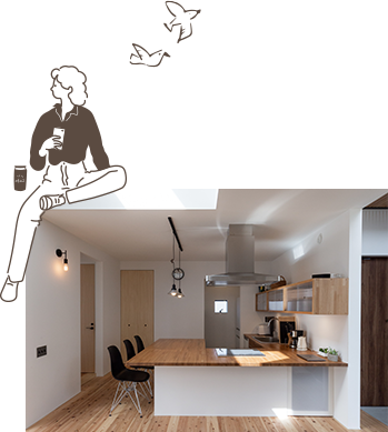 私たちが設計するのは、間取りではなく、あなたの「暮らし方」そのもの。例えば、朝日が気持ちいいリビングで読書をしたり、家族みんなでキッチンで料理を作ったり。